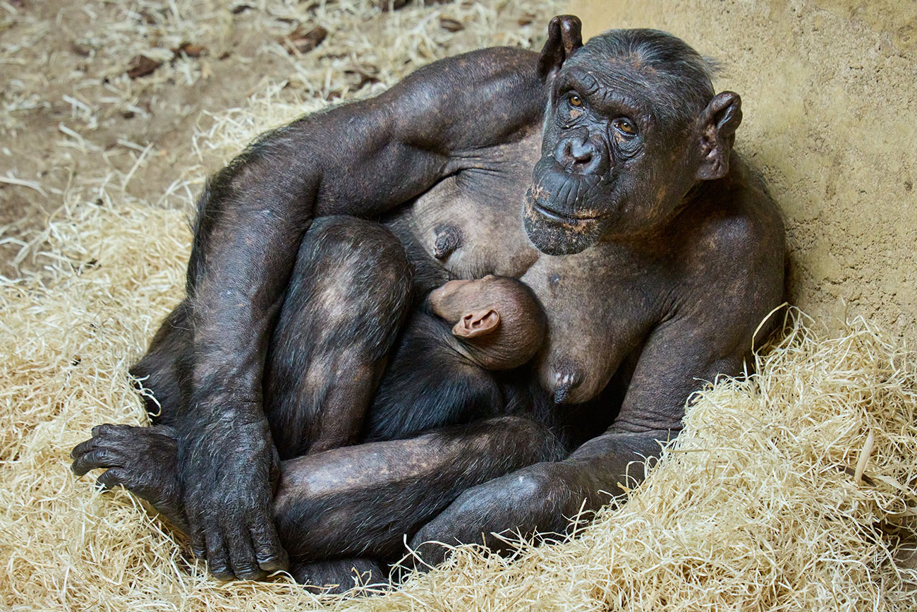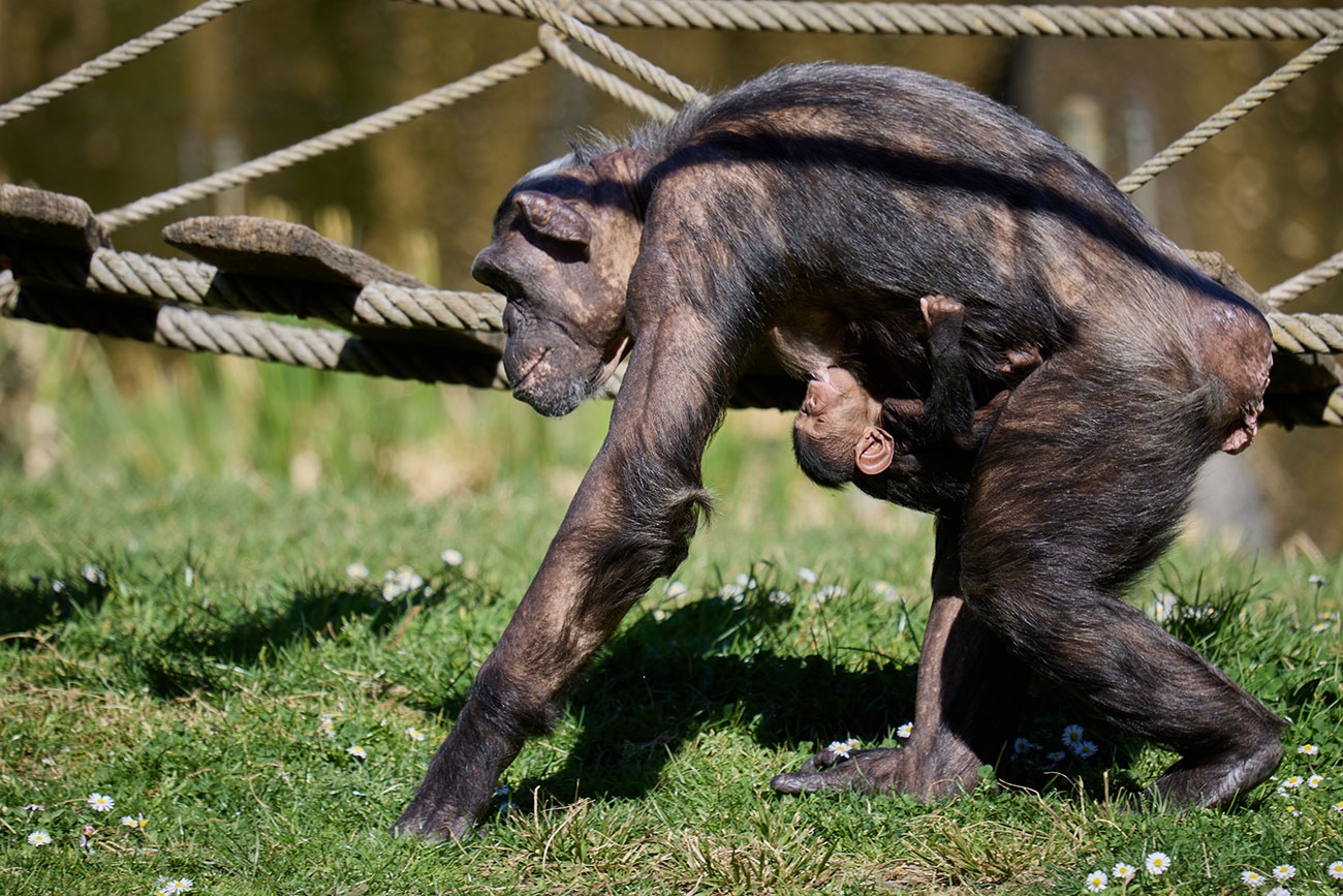 Our Central African chimpanzee troop has welcomed a new member! The 3-week-old newborn, who is Tibe’s second infant, is thriving. The 26-year-old mother had first given birth to a male in 2020.