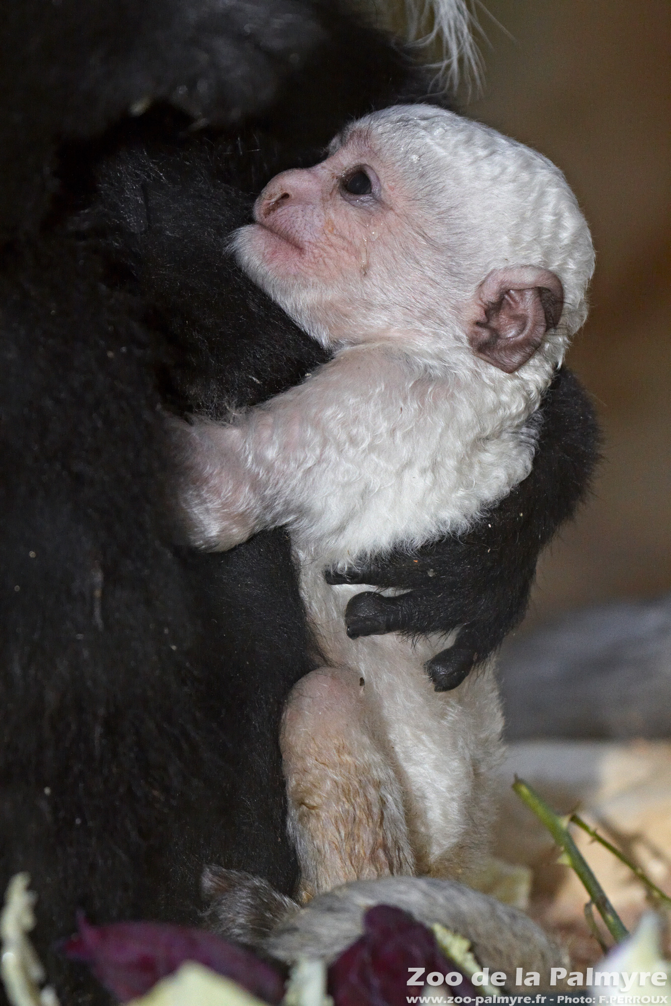 Les colobes vivent en groupes mixtes de 8 à 15 individus. A la naissance, le petit présente un pelage uniformément blanc et frisé qui foncera, s'allongera et perdra définitivement son aspect "cranté" au bout de 3 à 4 mois.