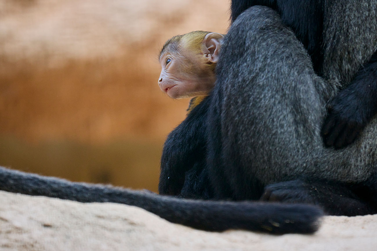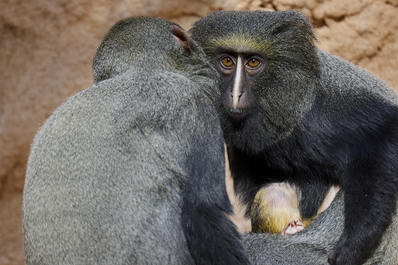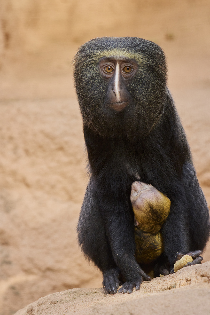 Voici les premières images du petit cercopithèque de Hamlyn né il y a une quinzaine de jours. Il s’agit du troisième petit de notre femelle âgée de 10 ans et arrivée au parc en 2017.