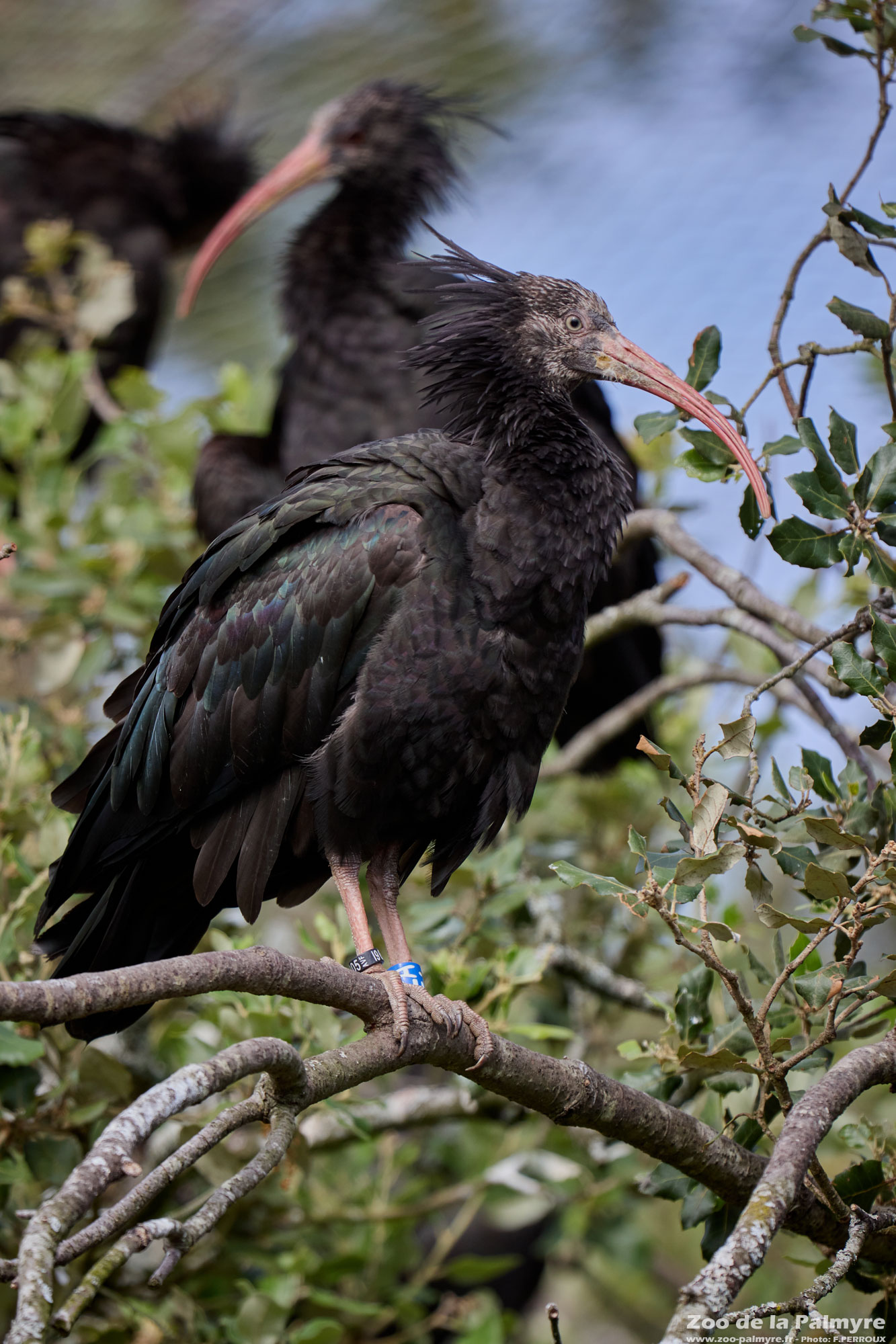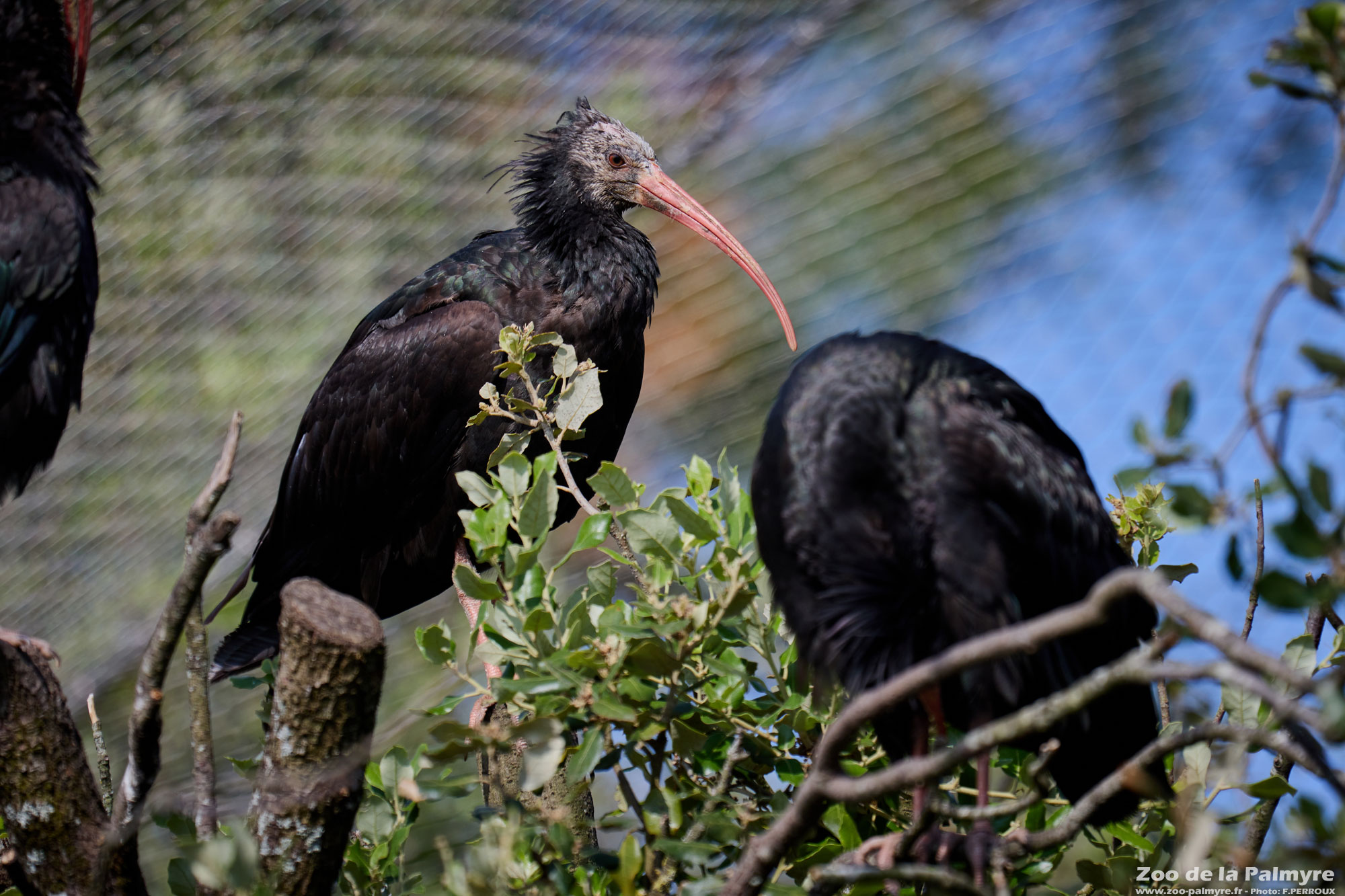L’ibis chauve possède un plumage noir avec des reflets métalliques bleus, verts et pourpres sur les ailes. Il doit son nom à sa tête dépourvue de plumes et à son cou également en partie nu. Son long bec incurvé lui permet de fouiller les anfractuosités du sol ou des rochers à la recherche de ses proies.