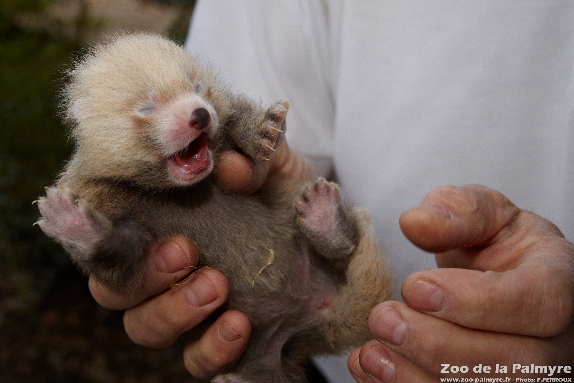 A la naissance, les petits pèsent moins de 130 grammes et possèdent une épaisse fourrure de couleur beige et grise. Ils prennent leur couleur rousse définitive vers l’âge de 2 mois. Leurs yeux s’ouvrent au bout de 18 jours mais les jeunes ne quitteront pas le nid avant l’âge de 3 mois. Ils atteignent leur taille adulte vers un an et sont sexuellement matures environ 6 mois plus tard.