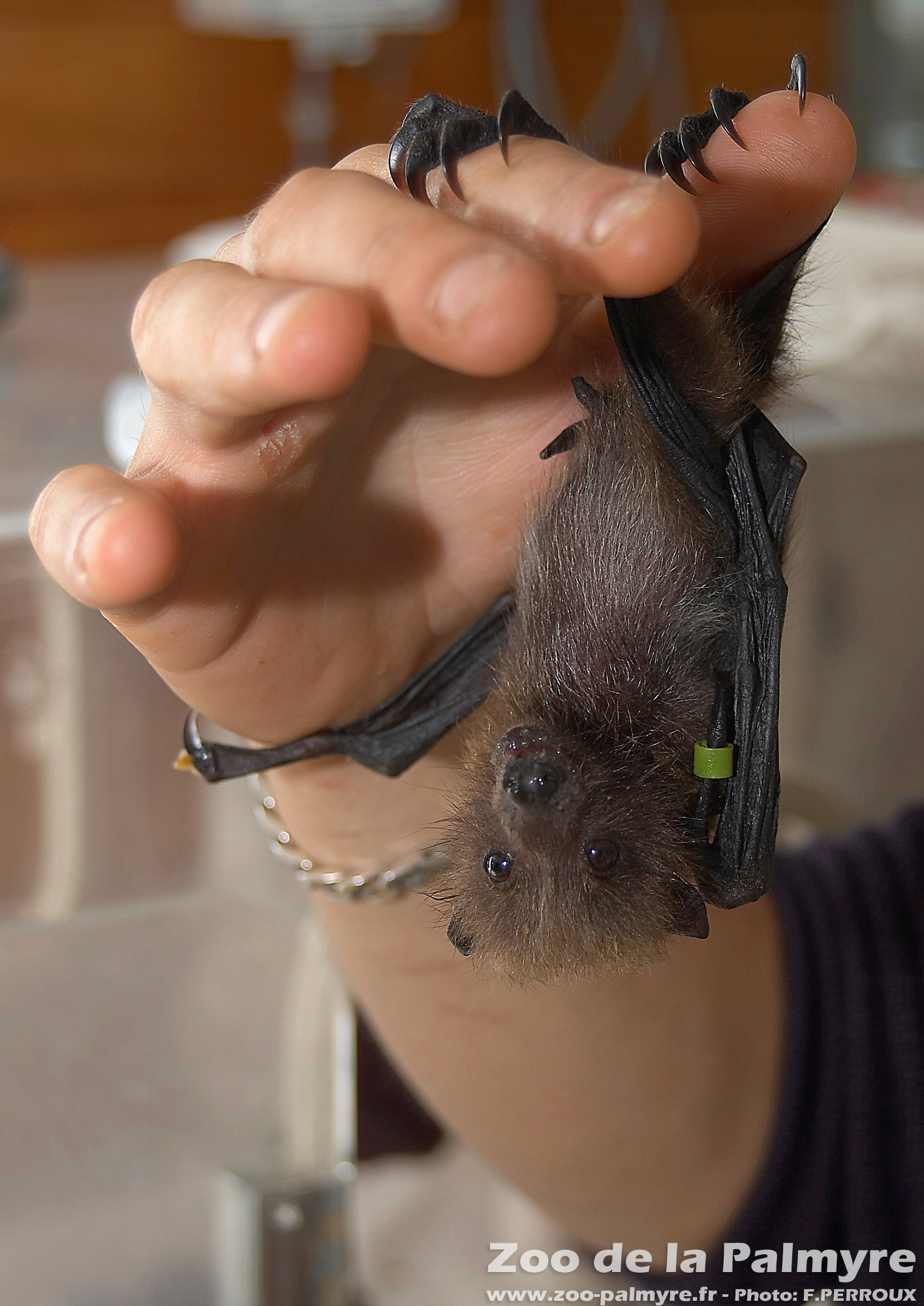 La femelle donne naissance à un seul petit après 4 à 6 mois de gestation. Le bébé s'accroche à la fourrure de sa mère avec ses dents jusqu'à ce qu'il soit trop lourd pour être porté, soit vers l'âge d'un mois. Il apprend ensuite à se suspendre comme les adultes, explorant petit à petit son environnement proche. Il est capable de voler à l’âge de 2 ou 3 mois, mais n'acquiert son indépendance qu'entre 6 et 12 mois.